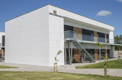Den nye skole tegnet af Poul Bjerre stod færdig til indflytning i 1974.