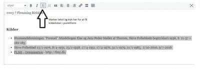Under al teksten oprettes kildelisten i punktform (se billede). Bøger opføres med