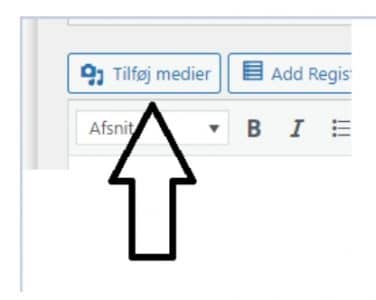 Tryk på “tilføj medie”, umiddelbart over hvor man skriver brødteksten.