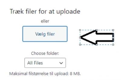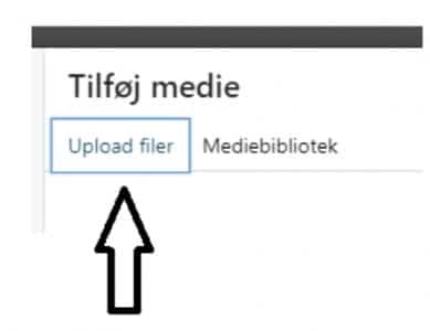 Vælg “upload filer” dernæst vælg “vælg filer”, find den ønskede fil på din computer, det ønskede billede er nu markeret i biblioteket.